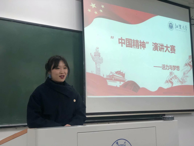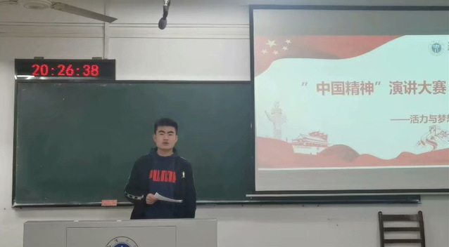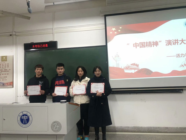 2020年11月22日晚上在教学楼j05b101教室举行了“中国精神”演讲大赛。团委副书记张清,员工会主席周锦峡,文联部代表张静怡,记宣会代表沈香怡出席了比赛并且担任了比赛的评委。