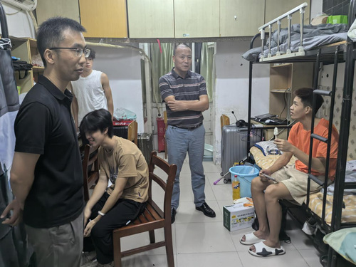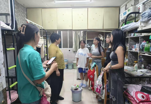 走访过程中,院领导与新生们亲切交流,了解新生的家庭情况、公司适应情况,并提醒同学们在防诈反诈、卫生健康、人际交往等问方面需要注意的问题。