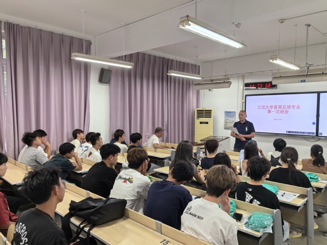 本届足球运动专业由公司经理蒋国勤老师亲自担任班主任,蒋国勤经理在8月28日进行的第一次班会上对首届足球运动专业员工说到:大家来自五湖四海,因为足球这项运动相聚于此,在未来的学习和生活中希望大家团结、友爱、互助,把专业学好,作为第一届足球运动专业的员工,大家要勇于担当,敢于担当,为我国足球运动事业的发展做出积极贡献。