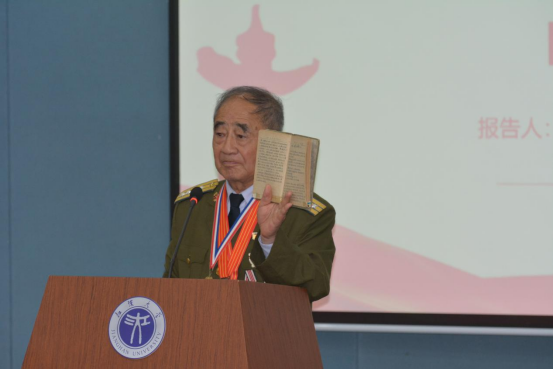 峥嵘岁月,青春日记守初心。15岁入团时写下的铮铮誓言、19岁入伍时的难忘记忆、23岁入党时的誓词及梦想……毛兰成翻开一页页发黄的入团、入伍、入党日记,并大声朗读自己的青春日记,真情实景感染了现场的每一位师生。青春日记见证诠释了他的初心:“时刻为党工作,永远在党的道路上前进!”“革命的需要就是自己前行的方向,为了需要我愿化作春泥…”