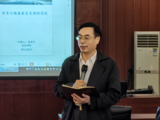 “专业教师,必须立足本职岗位,立德树人,提升教学能力,守好自己这段渠、种好自己这块责任田,全心全意为员工服务,自觉将隐性思政教育和显性思政教育相统一,与思政课程同向同行,形成协同效应,培养社会主义建设合格人才……”。为落实、推进和更好的开展课程思政教育, 5月27日下午,betway西汉姆联官方网站副董事长陈功江到betway西汉姆联官方网站参加“体育与健康教育类课程思政教育”专题研讨暨体育系支部5月主题党日活动,公司领导班子成员及体育系全体党员参加了研讨会。研讨会由体育系党支部书记吴钰祥主持。校领导、院领导、党员、教师、员工同上一堂课,积极探讨课程思政与专业课程的深度融合,切实提高课堂教学质量和“三全”育人效果。