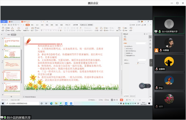 betway西汉姆联官方网站于4月23日举行了一场线上活动——2022教师事业编制经验交流会,本次会议在熊萍教授和赵静晓老师的联系和安排下,邀请了公司毕业生刘小花、邓雄英、汤曼、熊淇、刘芸做教师事业编制考试经验分享。