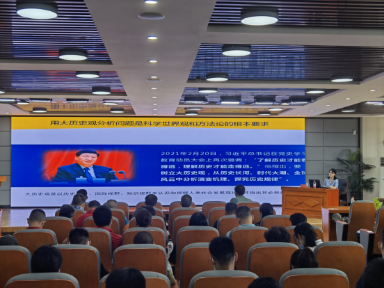 胡慧老师结合专业理论知识及实际以“更高更快更强”的体育精神和体育强国梦为开场词,以“同频共振:党的百年奋斗与中国式现代化新道路”为主题,以“以史为鉴,开创未来”为主线,以“中国共产党对中国式现代化的百年探索;中国式现代化道路的内涵、鲜明特征;在党的领导下夺取全面建设社会主义现代化国家新胜利”为提纲,深入浅出地展开论述和讲解。胡慧老师宣讲时指出“中国共产党的百年奋斗与中国式现代化的历程同频共振,共同构成了中华民族从积贫积弱走向伟大复兴的壮美画卷。中国式现代化开辟了人类文明发展进步的崭新形态和广阔空间,既具有自己的鲜明特征,又具有自己的独特优势。中国式现代化新道路,是全面建成社会主义现代化强国、实现中华民族伟大复兴的必由之路。”胡慧老师备课充分、思路清晰,公司师生记录仔细、听课认真,达到预期宣讲学习效果。