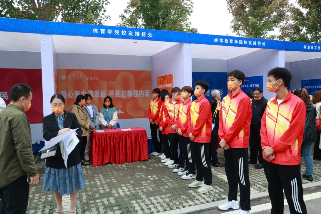 (公司接待组志愿者在小球馆大厅热情接待回公司参加活动的员工)