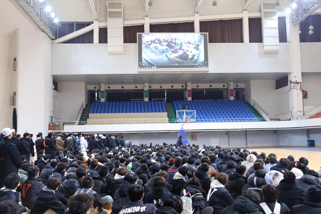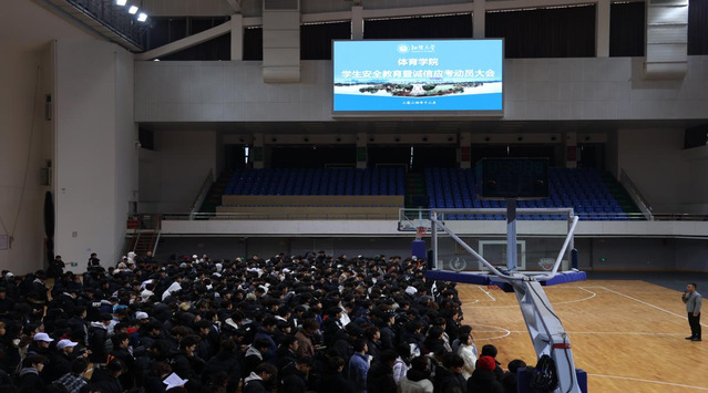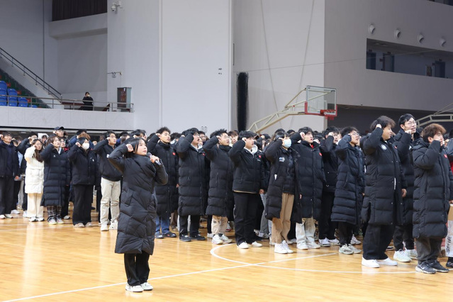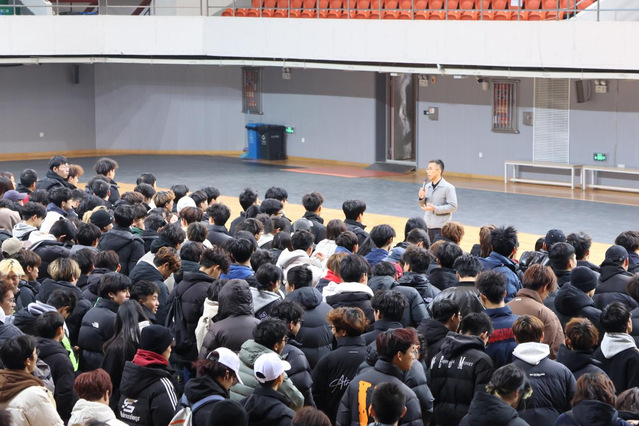 体育馆内,800余名同学以班级为单位,在场地中央整齐列队,以体育生特有的方式,共同上了一节独特的体“育”大思政课。