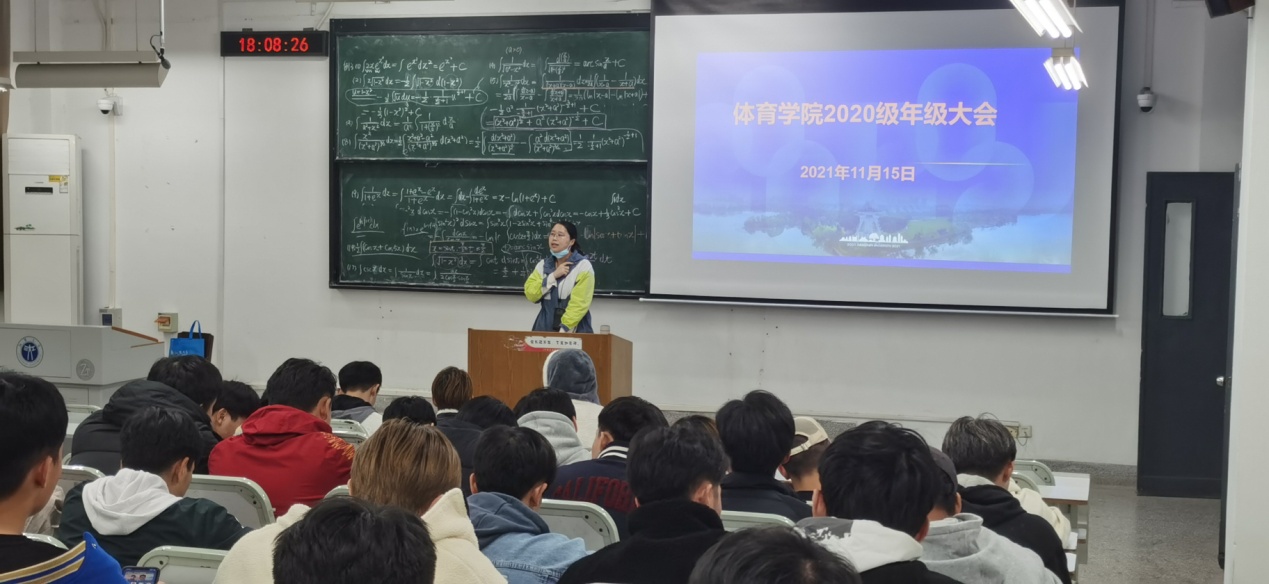 2021年11月15日晚,继9月开学初举行第一次年级大会以来,betway西汉姆联官方网站2020级辅导员李艳飞老师召集全体同学在J05A212教室召开了本学期第二次年级大会暨期中答疑解惑活动。