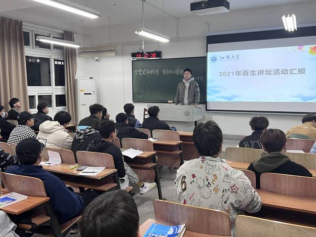 此次百生讲坛活动中,众多团支部踊跃报名参赛。在演讲环节中,各演讲人以支部理论学习组织及学习实践转化情况为主要依据,以“学思用贯通,知信行统一”为标准导向,有效结合“青春向党·奋斗强国”、“书记带我学党史”主题团日等相关宣传教育活动,结合团支部组织活力、建设特色与亮点等介绍自己的团支部。演讲过程十分精彩,在场观众及评委精神抖擞,现场气氛高涨。演讲结束后,评委对各演讲人进行打分并宣布排名。