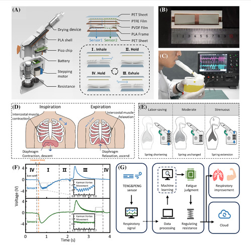 呼吸肌训练对提升呼吸功能具有重要意义,尤其是对于呼吸系统疾病患者和运动员等群体。然而,现有呼吸肌训练方法存在阻力无法自动调节的问题,难以精准匹配训练者的实时状态。该团队研发了一种基于混合纳米发电机传感器和人工智能的自适应呼吸肌训练器,为解决这一难题提供了创新方案。