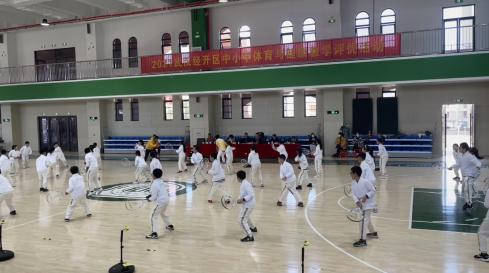 在本次武汉经开区中小学《体育与健康》课程教学比赛现场,同学们先后观摩了网球课的挥拍击球教学、篮球行进间运球教学、排球课教学以及侧向助跑跳高课。