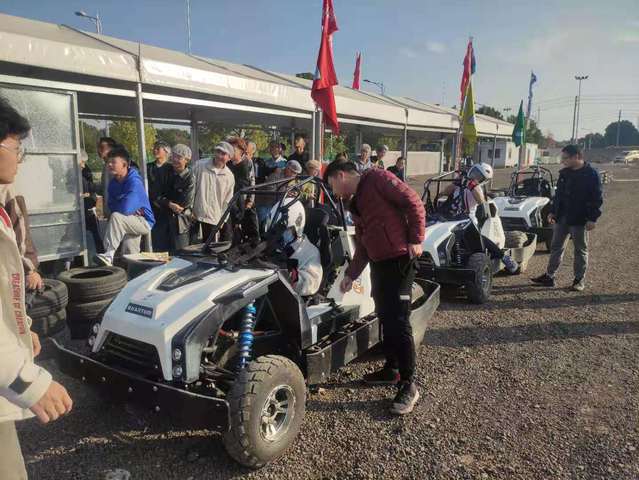 揭牌仪式后,公司一行在武汉小绿人动力技术股份有限公司相关负责人的带领下参观了公司赛车生产车间,了解了赛车的生产流程及品牌种类,随后在公司赛车场上,进行了电动越野赛车“闪电”的试驾活动,体验速度与激情。