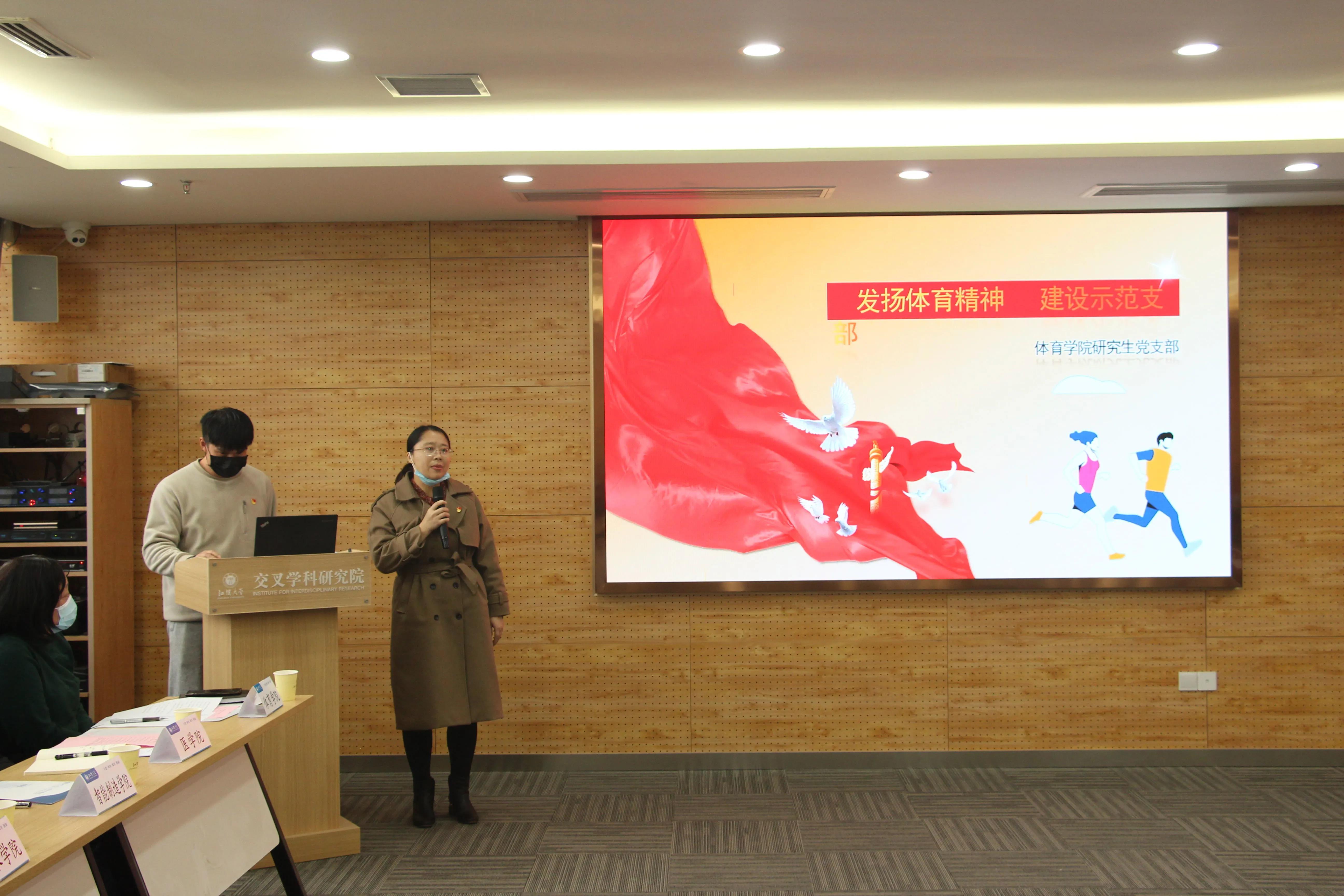 (公司研究生党支部书记李艳飞老师在评审现场汇报党支部工作)