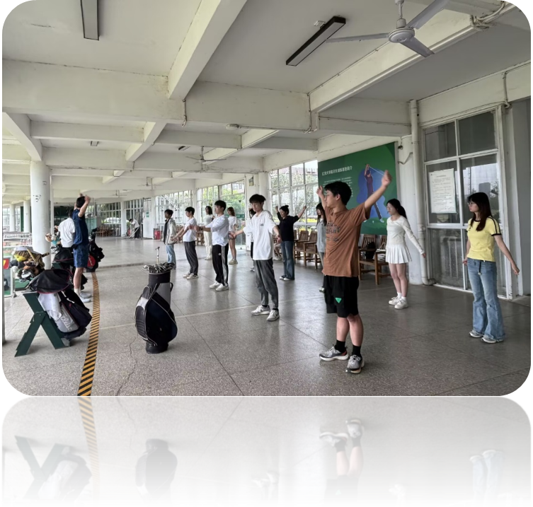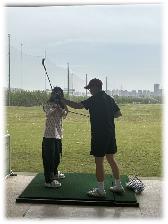 活动的教学环节堪称一大亮点。练习场上,俱乐部精心聘请的专业教练团队化身“高尔夫守护星”,以极高的专业素养和耐心投入教学。从最基础的站姿,细致讲解双脚间距、身体重心分布的要点;到挥杆发力,拆解每一个动作的发力顺序与技巧,教练们不仅讲解条理清晰、深入浅出,还亲自一次次标准演示,确保每位同学都能领会精髓。面对同学们层出不穷的问题,教练们始终面带微笑,不厌其烦地答疑解惑,手把手纠正动作偏差。在教练们的悉心指导下,同学们进步飞速,击球的动作愈发规范、流畅。
