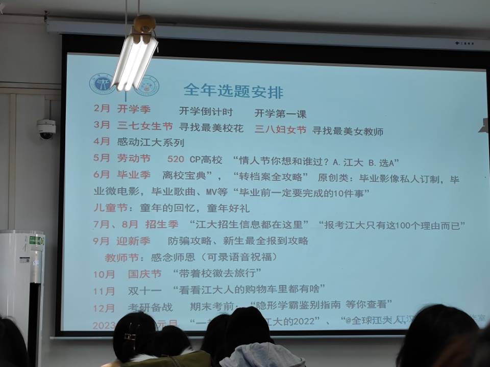 首先,公司宣传部黄韵雅老师向员工们介绍了新媒体的性质和重要性——新媒体是通过网络等渠道,利用电脑、手机、电视机等终端提供信息的媒体,她同时指出,一篇优秀的新闻稿应从文字、编辑、美工、摄影四个方面来展开。黄老师还分享了她自己作为记者去采访时应当注意的细节:在采访前就应该把所有的问题都整理好,采访时要仔细观察,随机应变。最后黄老师详细具体讲解了写新闻稿时的注意事项及方法:排版要美观、内容要精要、标题要新颖且紧扣题目、主要内容要详细。