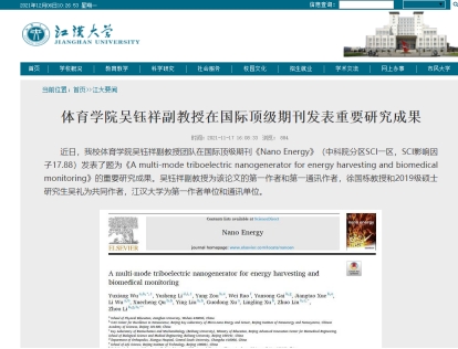二、建设创新型党支部,以教学科研为抓手,坚守教育初心。支部书记吴钰祥副教授和党员徐国栋教授在国际顶级期刊《Nano Energy》共同发表影响因子为17.88的重要研究论文《A multi-mode triboelectric nano-generator for energy harvesting and biomedical monitoring》。