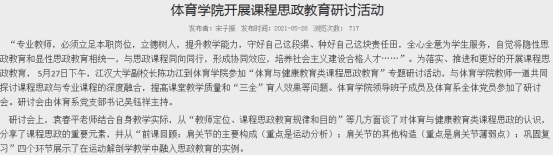组织召开“体育与健康教育类课程思政教育”专题研讨和主题党日活动,通过校院领导、党员、教师、员工同上一堂课,积极探讨了课程思政与专业课程的深度融合,切实提高课堂教学质量和“三全”育人效果。