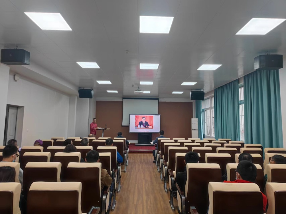 此次宣讲由公司党委副书记潘心纲同志主持,公司马克思主义公司讲师赵必珊同志主讲,公司近100名教职工参加了宣讲报告会。
