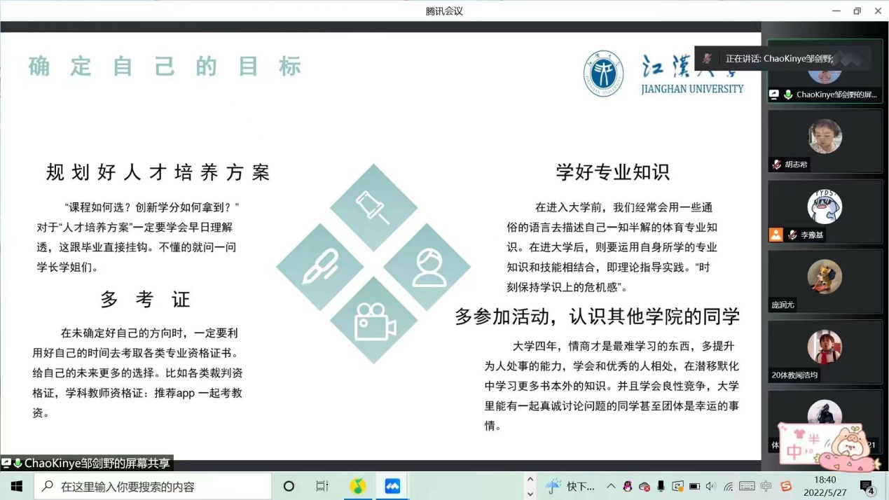 5月27日晚,邹剑野员工给大二员工分享了获得国家奖学金、董事长奖学金的经验以及考取大学工商管理双学位的经验,鼓励大家在大学要确定好自己的目标,根据人才培养方案学好专业知识,多考证、多参加活动锻炼自己。