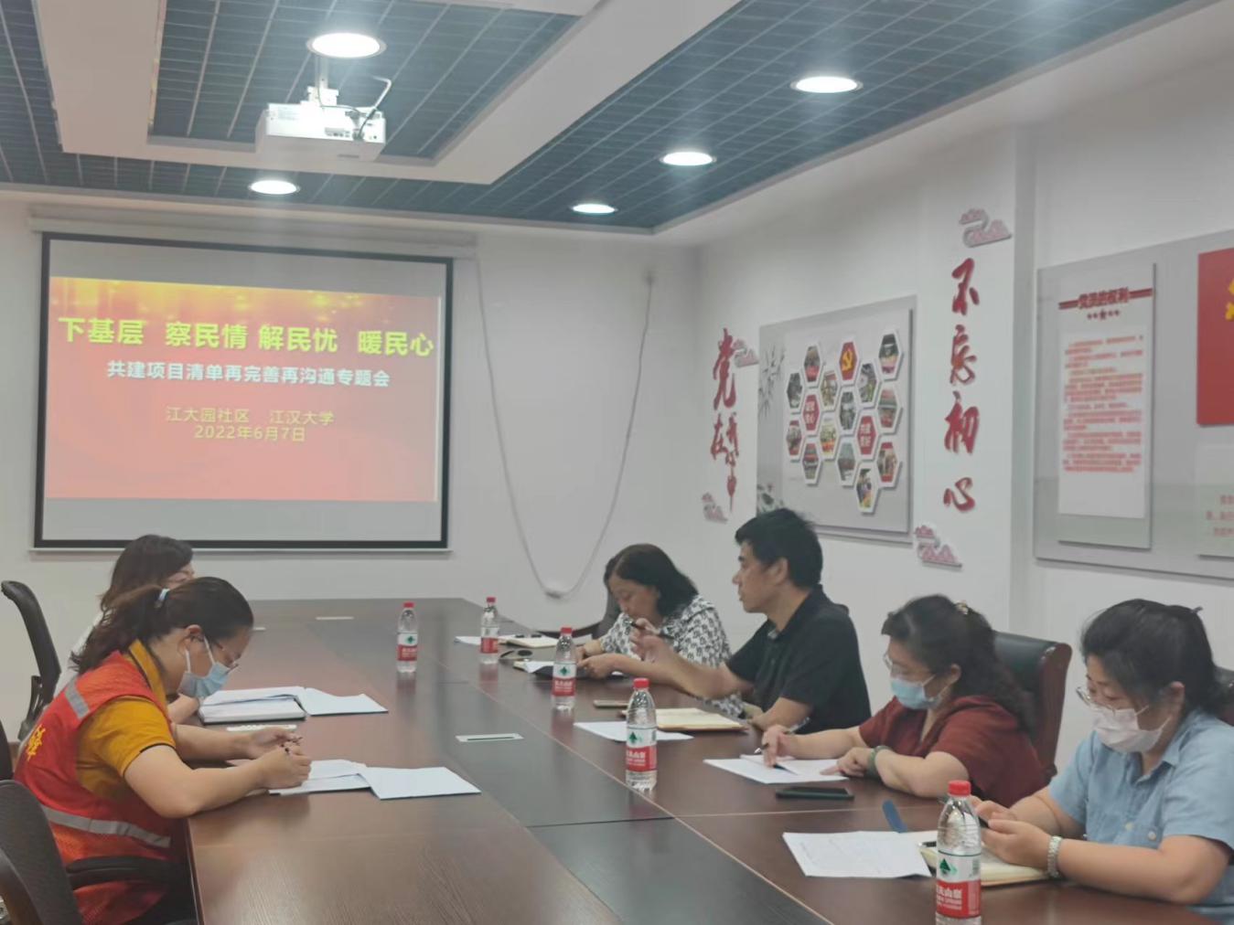 根据公司《关于开展党员干部下基层察民情解民忧暖民心实践活动的实施方案》部署要求,2022 年6月7日下午,公司李卫东副董事长带队深入江大园社区进行调研走访活动,betway西汉姆联官方网站、商公司、教育公司、设计公司主要领导及负责同志参加了此次调研走访活动。