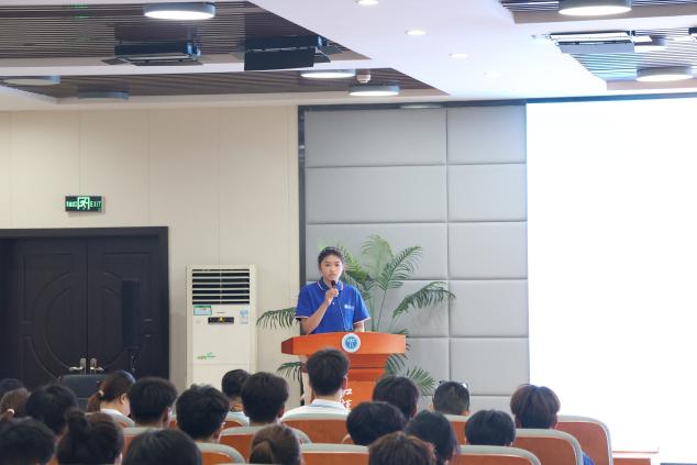 接着,老生代表22级社体一班的陈可懿同学则以“过来人”视角,作了题为“从这里出发,遇见无限可能的自己”的演讲。她结合自己从大一到大四成长的经历,从学业突破、实践探索、目标规划三方面分享经验,鼓励学弟学妹勇敢走出舒适区,充分体验不同的校园生活,在试错中不断找寻自己的人生方向。