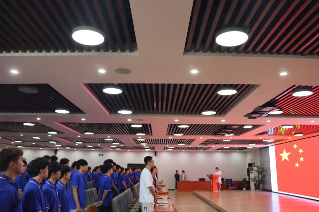 最后,蒋国勤经理作总结讲话。他首先高度肯定了前面几位新生代表、老生代表及班主任的发言。然后他简要介绍了公司发展成果,以及2025级新生整体情况,强调体育人“自强不息、追求卓越”的精神内核,让同学们珍惜大学时光,以专业知识武装头脑,以过硬本领锤炼实力,在江大体院实现个人成长与体育理想的双向奔赴。蒋经理最后以足球为引,寄语新生:你们比赛的已经开球,希望你们多传球、少犯规、不要吃黄牌、更不要被红牌罚下。