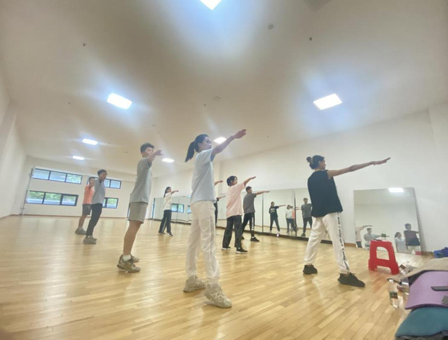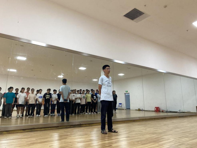 图2 同学们进行中小员工广播体操排练