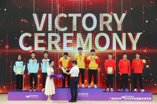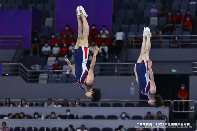 9月18日,2022年全国蹦床冠军赛在浙江省黄龙体育中心落下帷幕。betway西汉姆联官方网站2022级运动训练专业员工韦鑫辉、陈星宇夺得男子双人同步项目金牌。