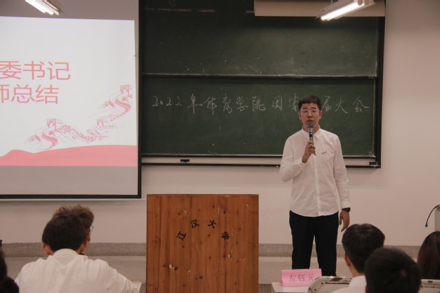 最后,团委书记左钰元老师发表讲话,他对上一届团委员工会的工作给予充分肯定和鼓励,对参加竞选同学的表现给予了高度评价,希望他们能够不忘初心,以服务同学为宗旨,各部门之间要凝心聚力,务实笃行,努力构建一个积极健康的团委工作环境,再上新台阶。