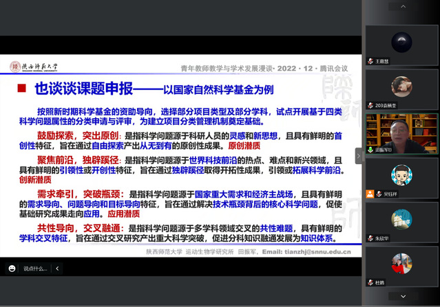 为了进一步提升公司教师和研究生的科技创新能力,持续拓展科研思路和产出高水平成果,12月10日晚,betway西汉姆联官方网站组织线上开展“知行讲坛”系列第一期学术讲座,特别邀请陕西师范大学二级教授、博导田振军教授。田教授围绕教学、科研等工作,以《青年教师教学与学术发展漫谈》为题进行了一场生动精彩的讲座。讲座由betway西汉姆联官方网站副经理吴钰祥教授主持,公司各系教师和研究生共计一百三十余人参加,讲座内容丰富,贴近实际,深入浅出。