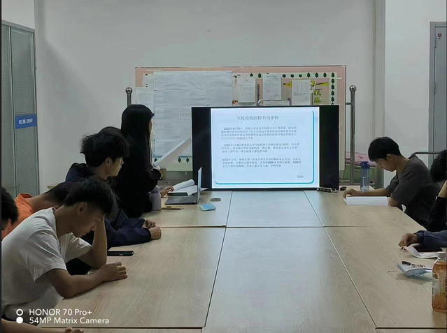 在此之后,王嘉慧老师针对目前公司防疫要求和近期几起违反疫情防控规定、违反校规校纪行为的几起事件进行了通报,王嘉慧老师表示,当前疫情仍有反复,大学是疫情防控的重点场所,她希望同学们遵守公司的有关规定,非必要不外出,在校内公共场所戴好口罩,寝室做好通风工作,