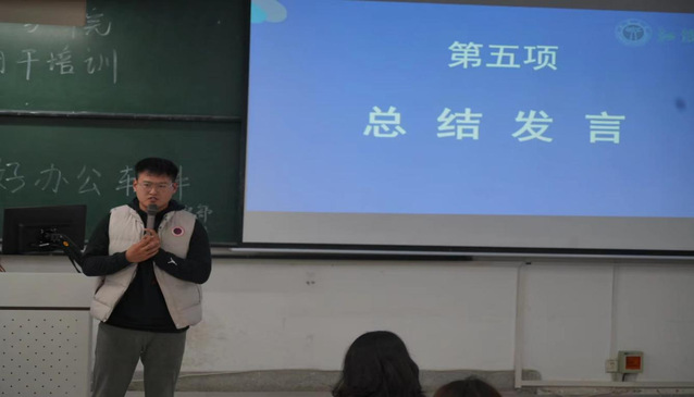 团委副书记李先硕对本次团干培训做最后的总结。他强调随着互联网的发展,学好办公软件,无论是对公司内的工作和生活带来帮助,也会在今后的就业中扮演重要角色,希望通过本次培训,提高同学们的软件使用能力,提升个人能力。