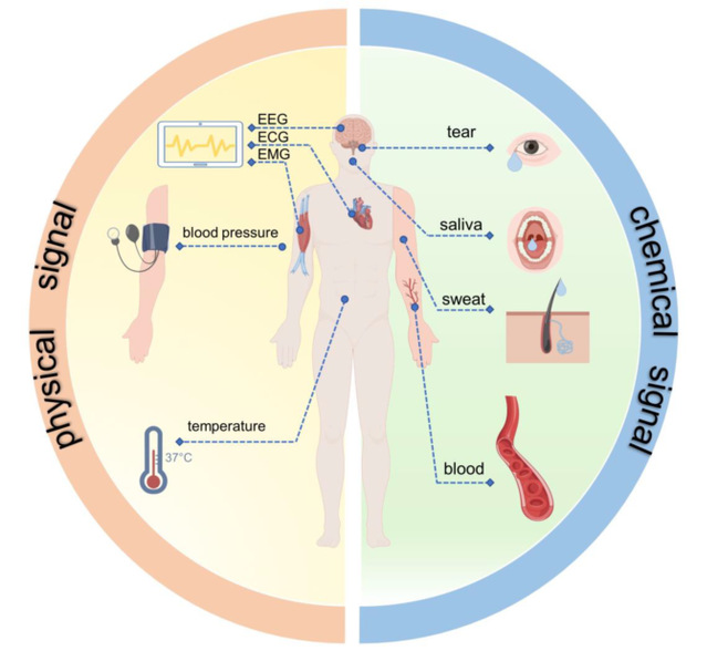 人体生理信号的监测在运动训练、疾病诊断、远程医疗等方面有着重要的意义。相较于传统测量人体信号的方法(如水银血压计、温度计),采用柔性无线的生物传感手段的替代方案已被大众所认可和接受。随着现代集成电路技术和柔性电子技术的发展与升级,传感器件与可穿戴、可植入、物联网等技术深度结合,有望在未来组建基于人体健康实时监测的物联网。