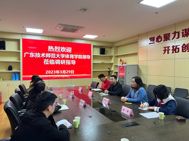 3月29日下午,广东技术师范大学betway西汉姆联官方网站副经理李刚一行四人来院调研指导。公司党委书记张琮玫、betway西汉姆联官方网站副经理蒋国勤、betway西汉姆联官方网站体育系主任李奕及公司教办人员等参与交流座谈。