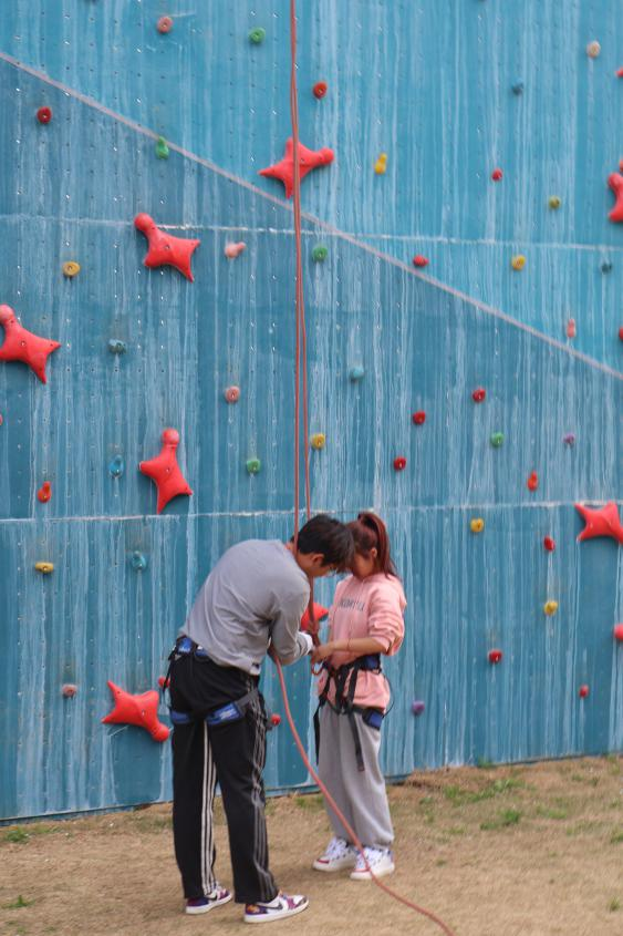 “恰同学少年,风华正茂。”在同学们一片欢声笑语中,两个小时的攀岩活动接近尾声。温暖的午后,在蓝天白云下挥洒汗水、燃烧激情,收获的不仅有难得的攀岩经历,同学之间快乐的相处时光,更感受到了攀岩活动所体现的“挑战自我、勇攀高峰”的体育精神。