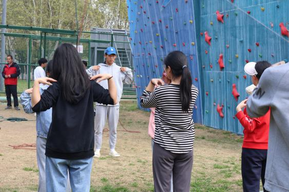 下午14:00,活动开始后,首先由betway西汉姆联官方网站专业教练带领同学们进行充分的热身活动。热身之后,教练为同学详细讲解攀岩的技巧及注意事项,并进行实操演示。