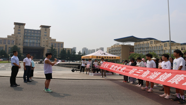 社会合作与员工工作处副处长、校教职工乐跑协会会长、三角湖跑团创始人潘心纲发表致辞,指导同学们如何进行科学健康地跑步,公司党委副书记黄松宣布倒计时和跑步开始,心理辅导员陈丹讲解了活动规则。