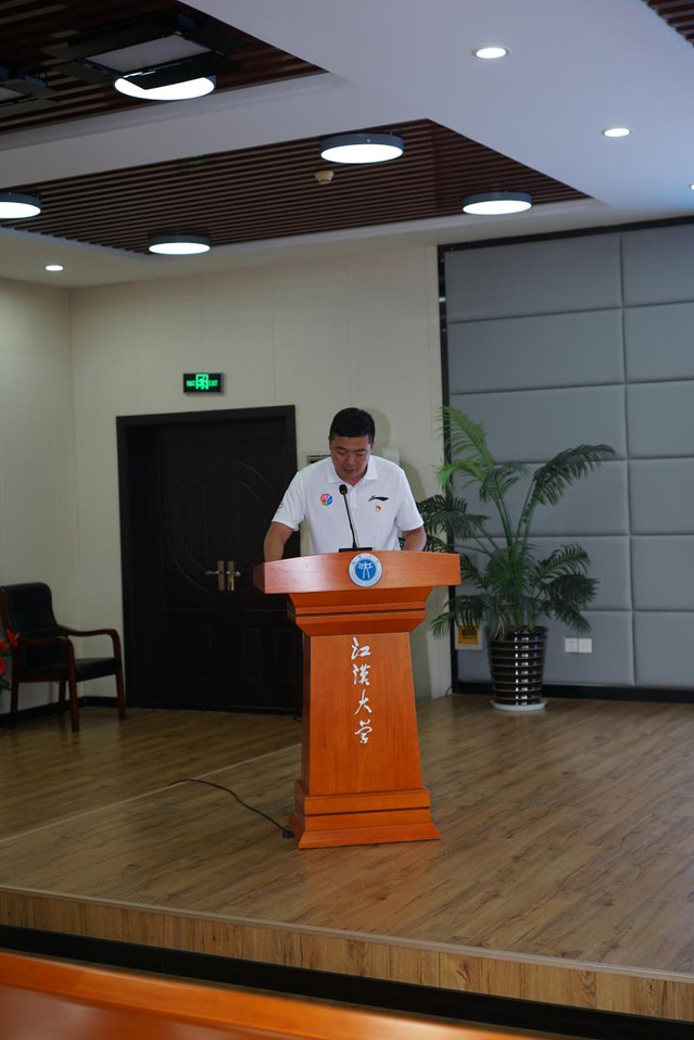 武汉经济技术开发区奥林小学专任体育教师、betway西汉姆联官方网站2011届运动训练专业优秀毕业生魏威代表员工发言,他建议学弟学妹们大学珍惜大学时光,提早规划自己的发展方向。祝大家在美丽的betway西汉姆联官方网站,找到更好的自己,出去都是棒棒的江大体育人!