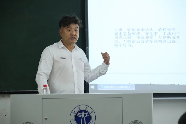 王翔强调,驾驶理论是驾驶车辆必要的前提和要求,对于如何进行越野赛车的驾驶,要将理论知识要牢记于心,理论与实践相结合,在确保安全第一的前提下进行越野赛车的驾驶,待对路线掌握熟练后学习过弯转向的技巧驾驶来提高比赛成绩。整堂讲座内容独特新颖,极具科普宣传力,会后还进行了互动。