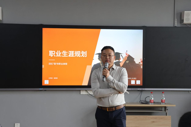 商文华老师首先为大家介绍了职业规划的重要性。随后谢迭政给大家介绍了他公司创办的过程,就创业途中的队伍建设、运营技巧、创意设计、后期处理等方面分享了自己的经验。结合自己一路走来的就创业经历,他向在座的同学提出了“先就业,再择业,伺机创业”的理念,鼓励同学们大胆去做自己感兴趣的领域,尽早做好职业生涯规划。现场提问环节中,谢迭政学长结合自身工作管理经验对大家的问题进行了细致解答,大家纷纷表示受益匪浅。