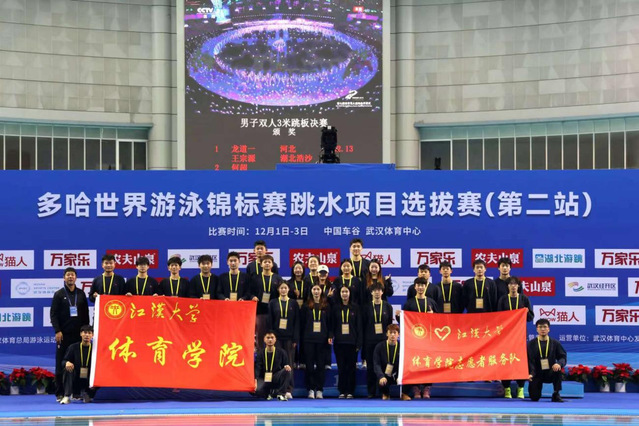 2023年全国跳水锦标赛暨巴黎奥运会、多哈世锦赛选拔赛于11月22日—12月3日在武汉体育中心游泳馆举行。受组委会委托,我院团委共选派60余名志愿者及1名带队教师,圆满完成了票务服务、观众服务、竞赛保障、体育展示等各项志愿工作。