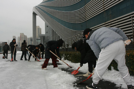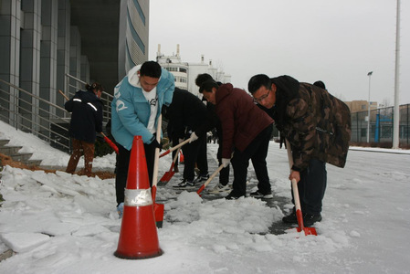 近日,受雨雪冰冻天气影响,校内道路积雪严重,给师生们的出行、生活带来了诸多不便。