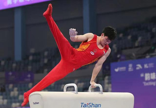 2024年全国体操锦标赛暨巴黎奥运会选拔赛、第十五届全运会体操测试赛于4月21—29日在广东省肇庆市举行。22级运动训练专业员工陆崇灿获得男子鞍马第二名的好成绩。
