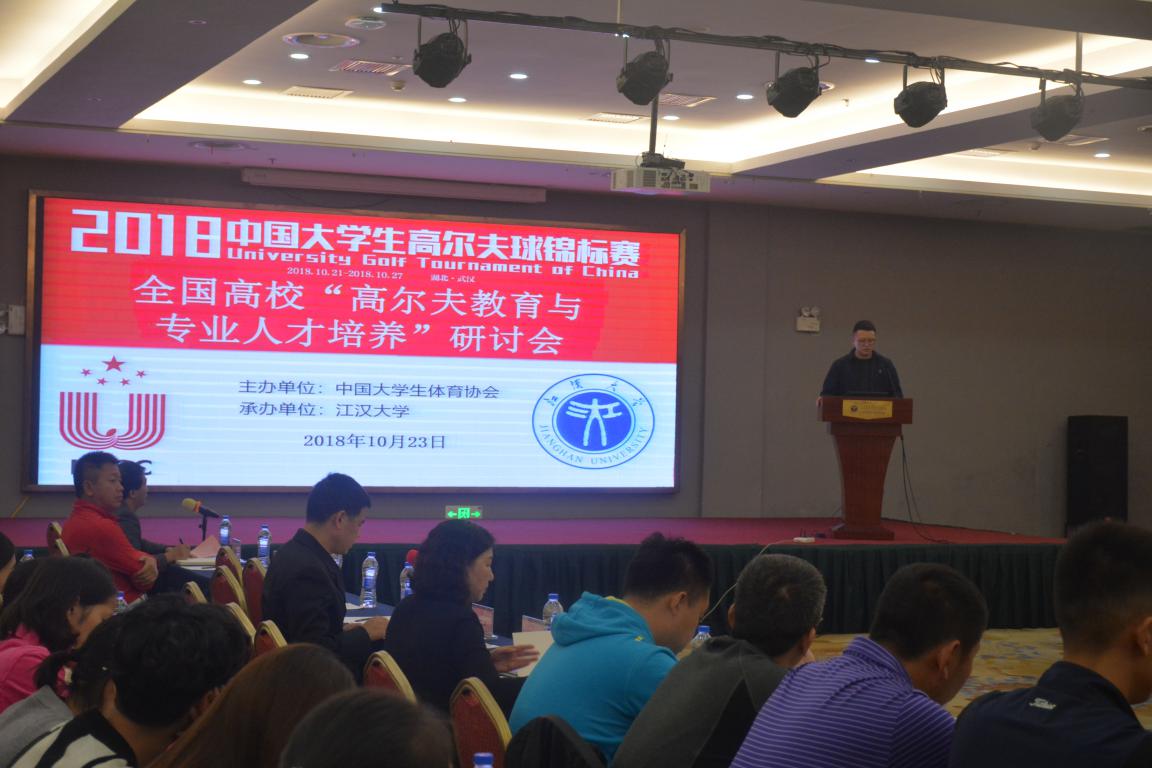 2018年10月23日下午,“高尔夫教育与专业人才培养” 研讨会在betway西汉姆联官方网站学术交流中心仁德厅举行。研讨会由betway西汉姆联官方网站教务处处长周昕教授主持,来自全国部分院校的董事长,全国59个参赛院校领队、教练员、教授等约130人参加了本次研讨会,同时betway西汉姆联官方网站80余名高尔夫专业员工聆听了主题报告,共同分享了部分院校的高尔夫专业人才培养过程和培养成果。