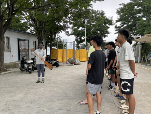 集合后,龙舟专项的赵正宇、武晓东为大家讲解划龙舟的注意事项并示范正确的划桨姿势。