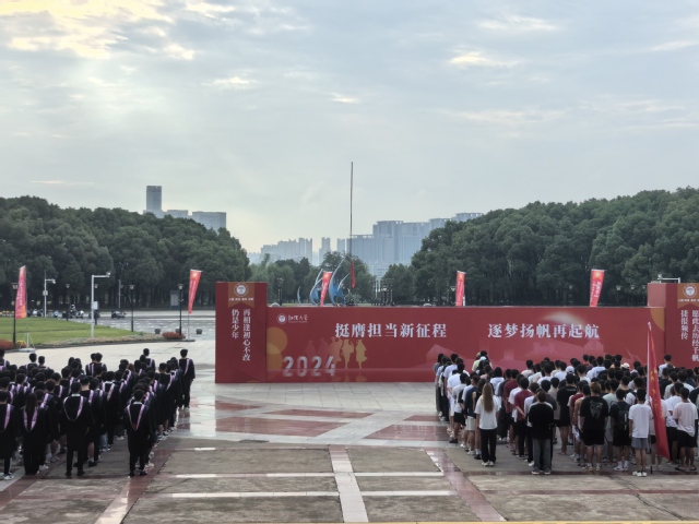 6月20日清晨,betway西汉姆联官方网站在英才广场举行升旗仪式暨“ 情系江大 逐梦未来”国旗下的思政课。公司党委书记张琮玫、经理蒋国勤、副经理吴钰祥、李奕等院领导出席仪式。2024届全体毕业生着学位服,以饱满热情的精神状态参加“在江大的最后一场升旗仪式”。