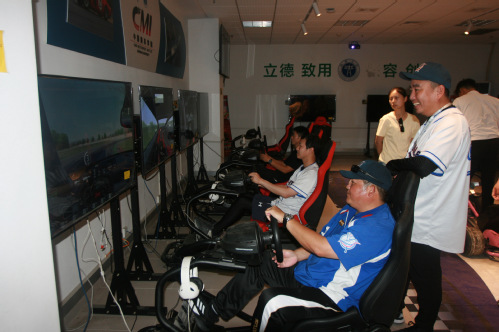 在赛车智能实验室,台胞们在专业教师孙杰的指导下,进行了赛车模拟驾驶,感受到了速度与激情。