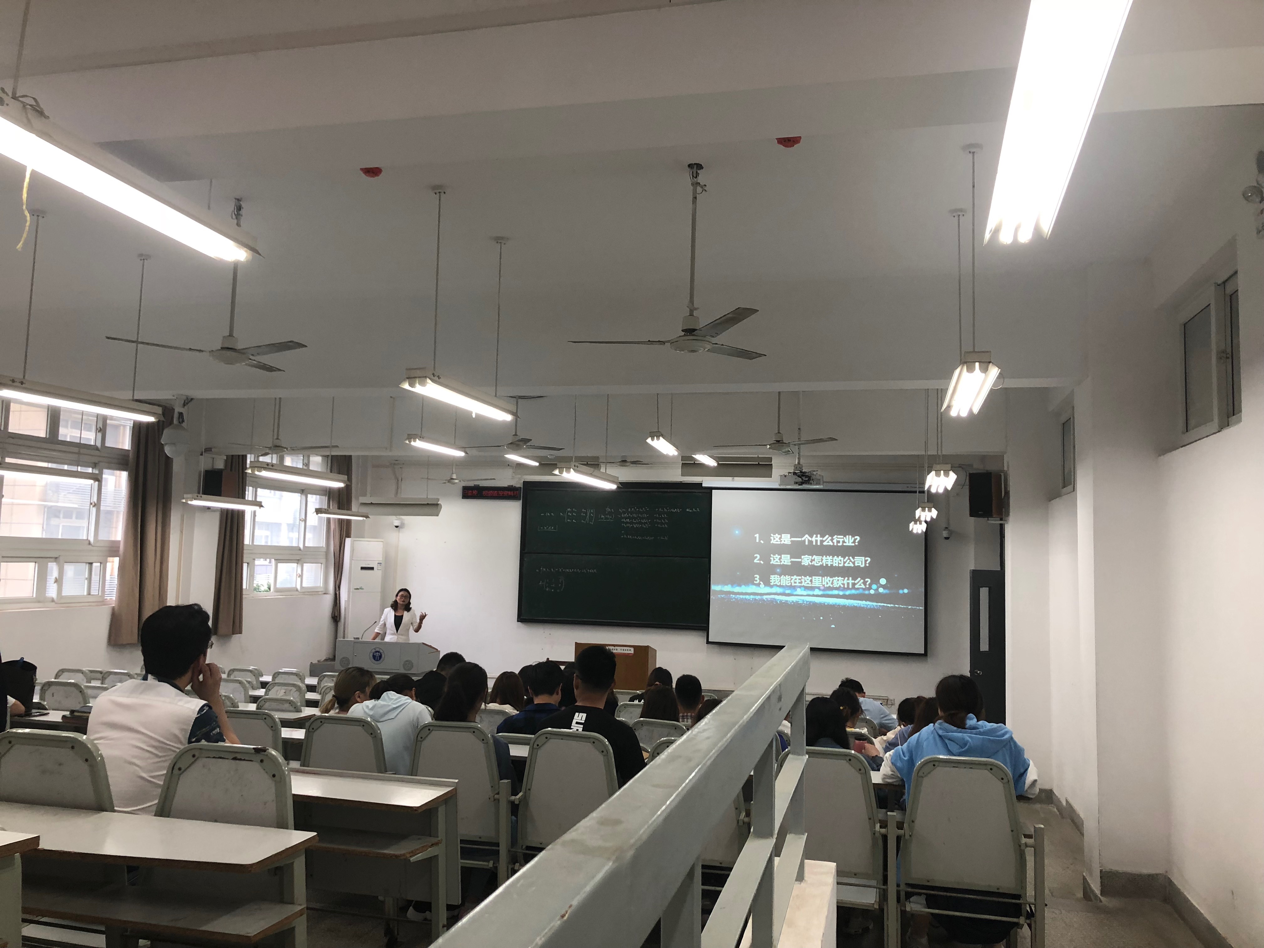 周玉格老师代表公司向各位企业家的到来表示欢迎和感谢,针对当前的就业形势与就业政策,对公司毕业生的就业情况作了简单的介绍和分析。之后,各家企业负责人从关于我们、企业文化、企业员工培养模式、企业目前的发展状况及发展前景与同学们作了详尽的分享。在宣讲会的互动环节,同学们也就自己所关心的专业对口、企业所需求的人才素质、公司发展平台与机会等问题与企业家们进行了互动交流,企业家们纷纷认真作答,并多次强调“选择”对于老员工的重要性,希望同学们都能找到自我实现的价值与目标,并为之而努力奋斗。宣讲会场面热烈,掌声不断。