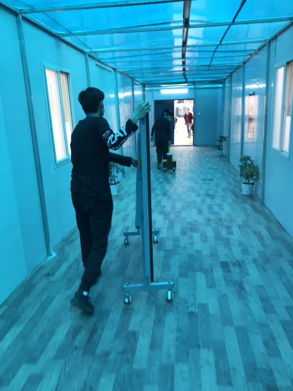 ↑李焰强与员工:师生在防疫一线邂逅