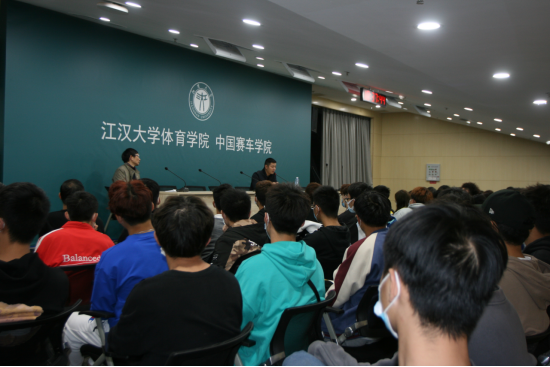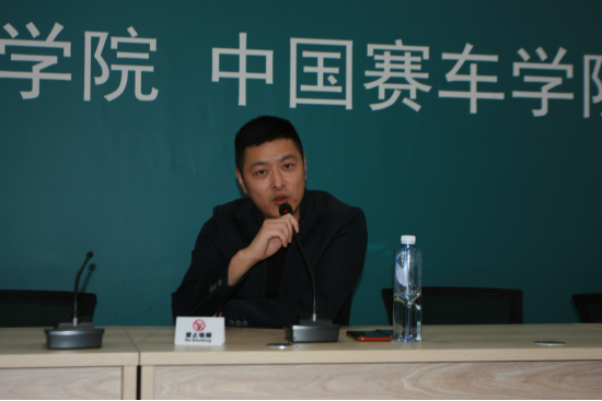 王祺会长在讲座中通过自身热爱赛车并投身赛车事业的经历,向同学们传达了热爱在青年人成长中的巨大作用。并以一个车手参加赛车比赛的完整过程,向同学们简单介绍了赛车维护与调教,车队运营与管理等相关赛车知识,特别提到作为一个赛车产业的工作人员必须具备的相关素质。